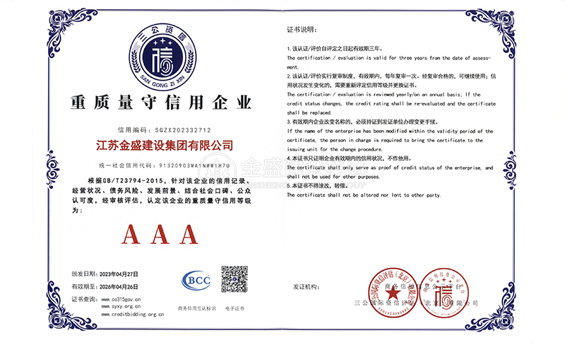 • 3A級(jí)資信等級(jí)證書(shū)