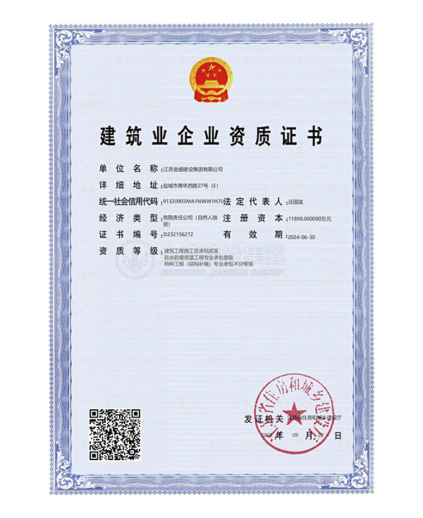 • 施工總承包貳級(jí)新防水防腐保溫工程專(zhuān)業(yè)承包一級(jí)
